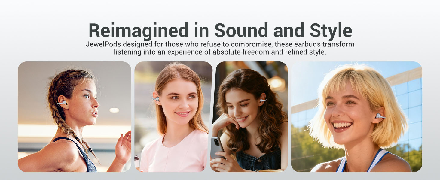 Upgrade your listening experience with JewelPods C01 Wireless Earbuds. Enjoy high-quality sound, long battery life, and stylish design all in one package.